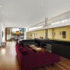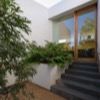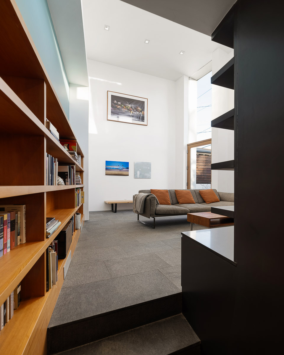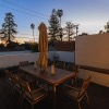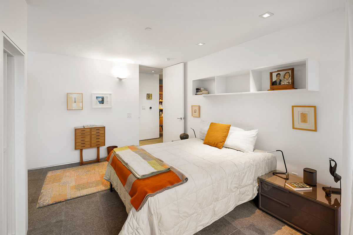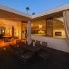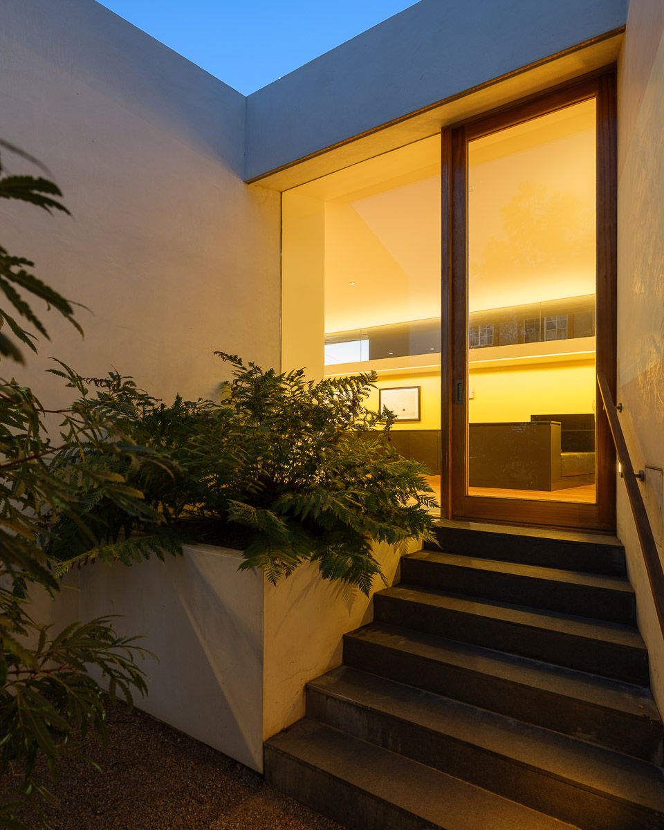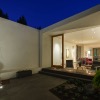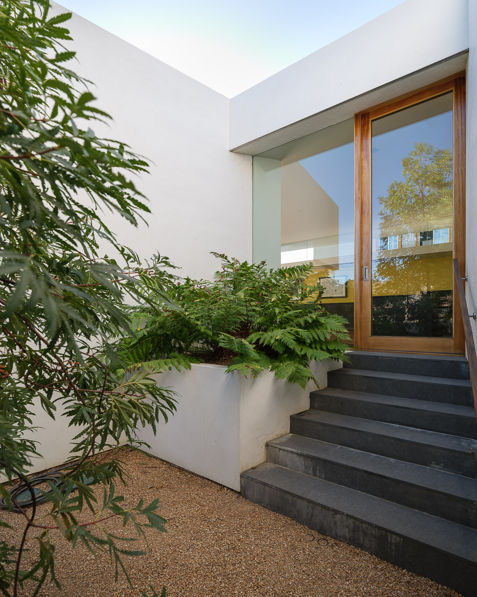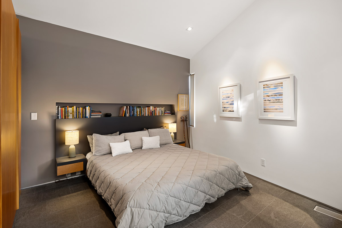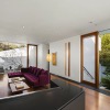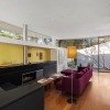 This home exudes sophistication, with a distinctive facade featuring a soaring cantilevered roofline and dramatic lighting. The curb appeal is unparalleled. The angled walls, basalt stone and Cumaru flooring effortlessly connect the inner spaces with outdoor gardens that wrap the structure, allowing for an easy grace when entertaining. Step into a world of modernist style as you enter the walled courtyard leading into the magnificent, light-filled entry. Once inside, you're beckoned in to the open floor plan that includes a living room, dining room, gourmet kitchen, family/media room, three bedrooms, one of which is a primary suite, and two and one-half bathrooms.