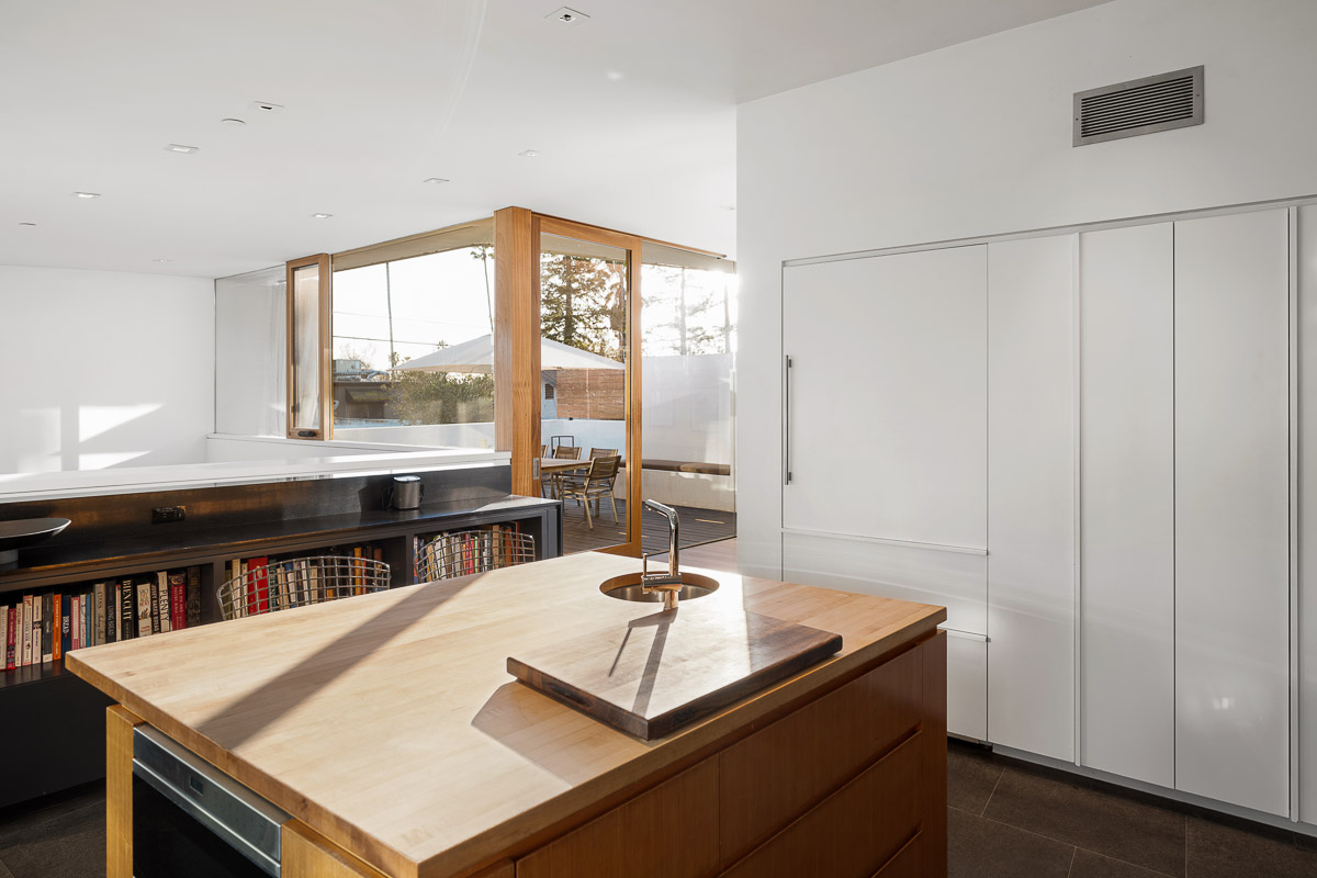The interior is highlighted by custom cabinetry, flush-mounted doors, and quality fixtures reflecting an elevated lifestyle. A custom designed lighting plan adds to a refined and welcoming mood. The chef's kitchen is a culinary haven, bathed in natural light and equipped with high-end appliances, hand-crafted cabinetry, and a generous island for both food preparation and enjoyment. Outside, the owners, in collaboration with a landscape designer, transformed the surroundings into a serene oasis with native Californian shrubs, grasses and trees.