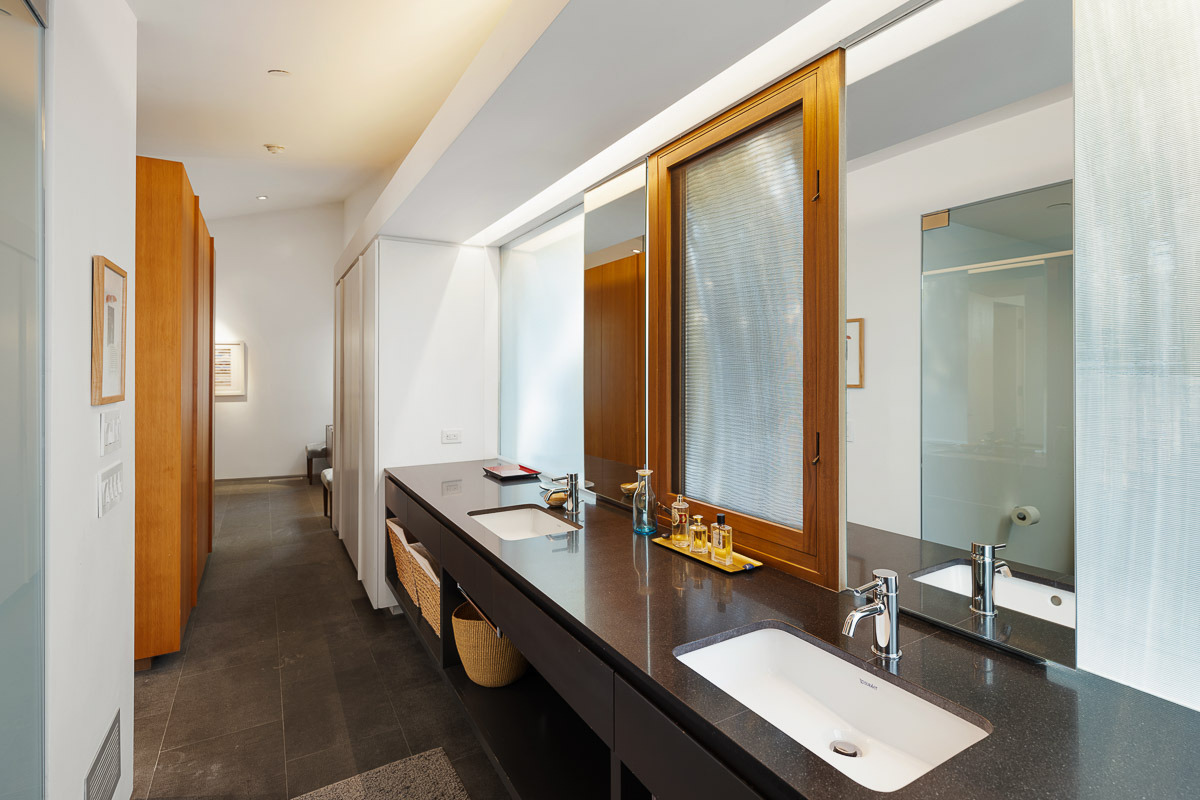 Noteworthy highlights of the property include solar panels which further enhance sustainability and energy efficiency. In addition, there is a Cumaru wood deck, a back garden with a fire pit bordered by built-in seating, a covered work bench and area with cabinets, as well as a car charger for electric vehicles. More than just a house, the 'Callow' residence epitomizes visionary design and enduring elegance, offering a timeless retreat where no detail has been overlooked. A truly spectacular home!